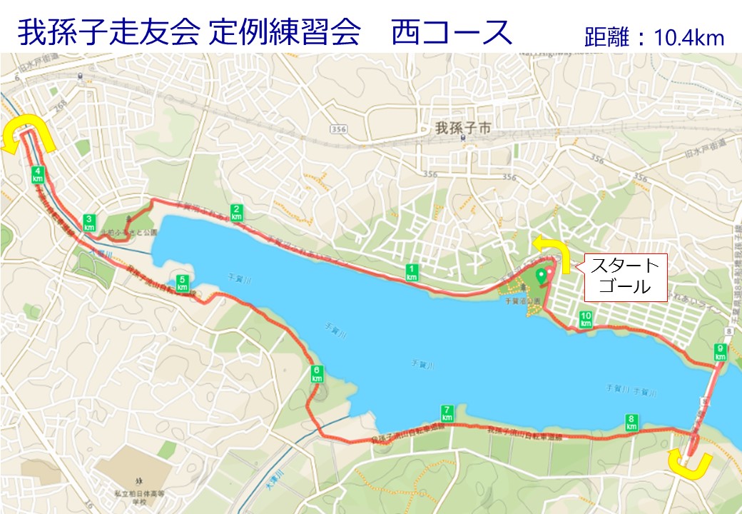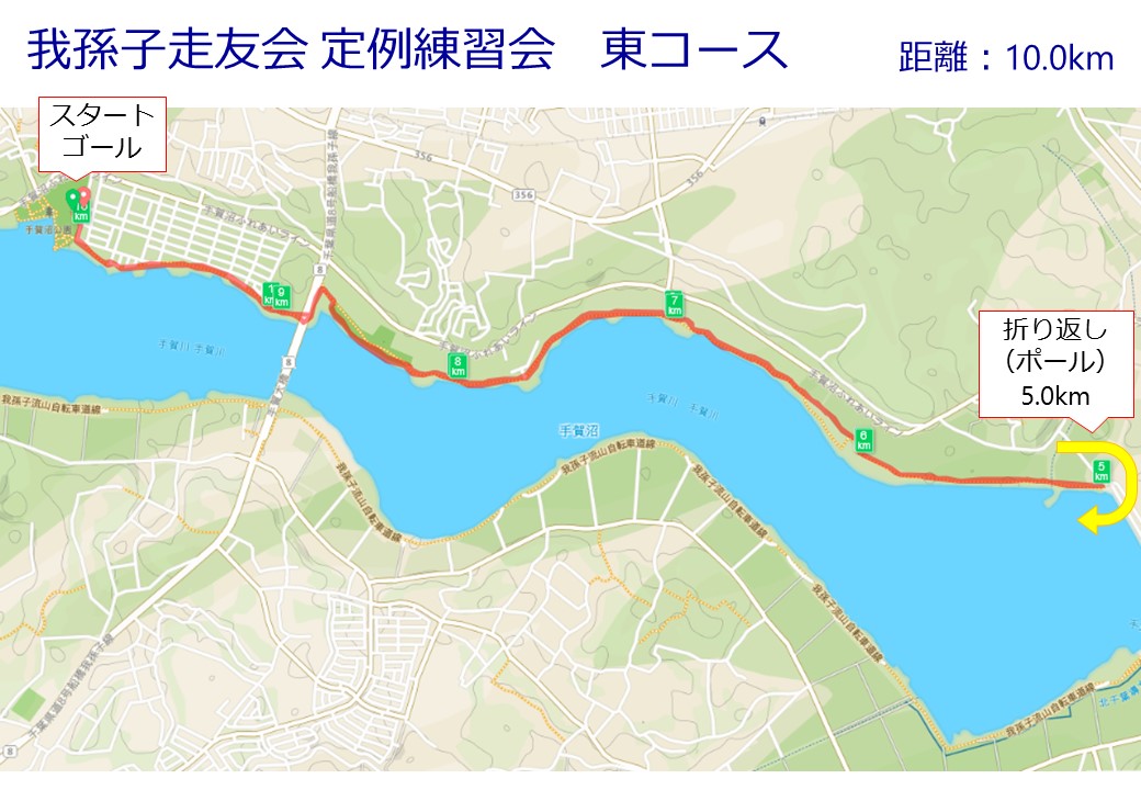 - 集合場所 〜 手賀沼遊歩道 〜 我孫子高校 野球練習場 折り返し